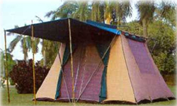 All Cotton tent fully screened entrance pleasantly air-conditioned inside. Made from Cotton Canvas Waterproof 270, 325 or 450 gms per square meter natural white or in a color of your choice. Ground sheet in PE fabric.