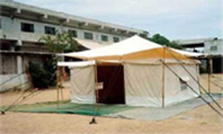 This Refugee tent is exported for the African Refugees. Used for multi - purposes.Roof Made from Cotton Canvas 500-525 gms per square meter natural white or olive green and walls made from 450 gms per square meter. Waterproof and rot proof.